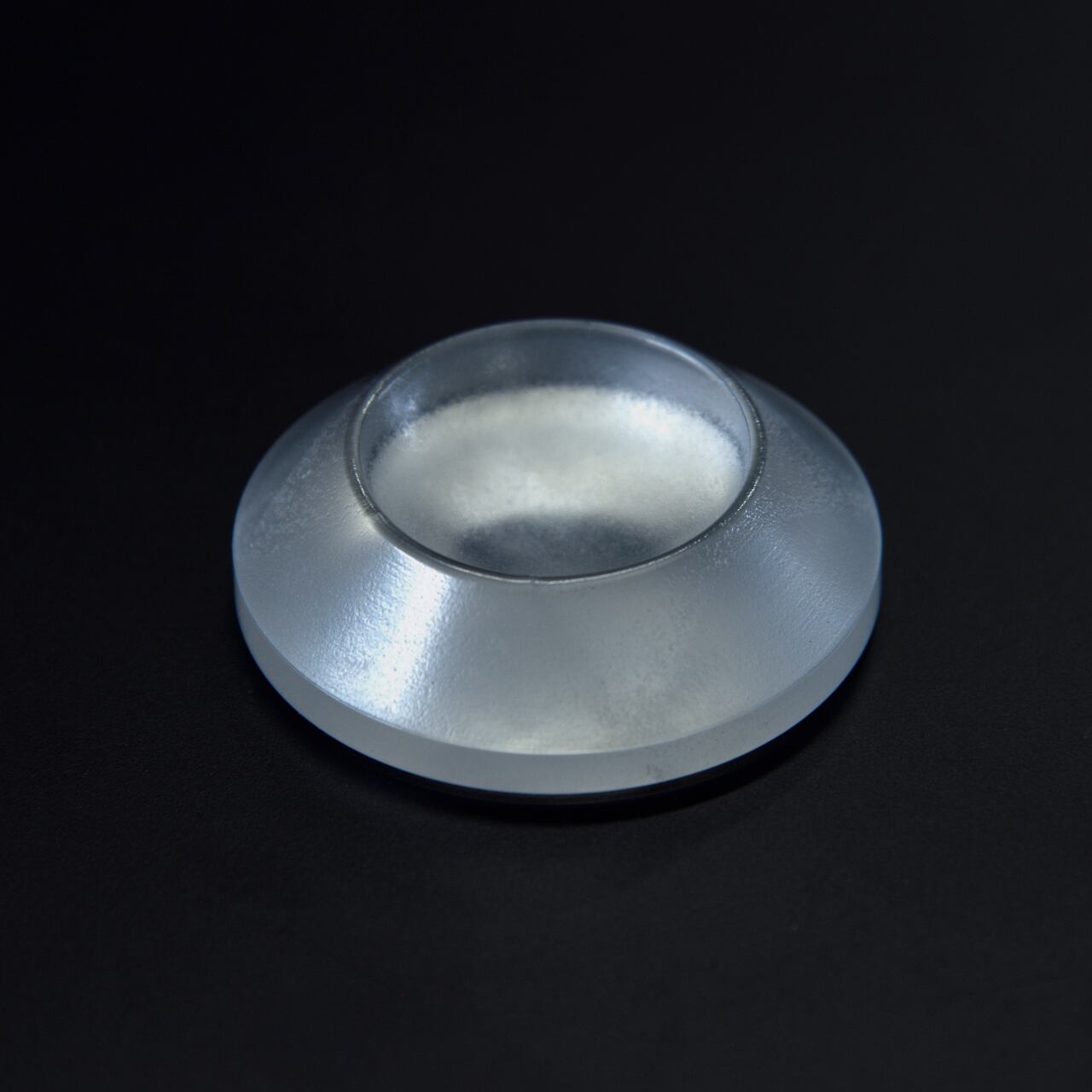 光学レンズの製造工程の中ではレンズになる一歩手前、研磨前の「プレス品」と呼ばれるものです。