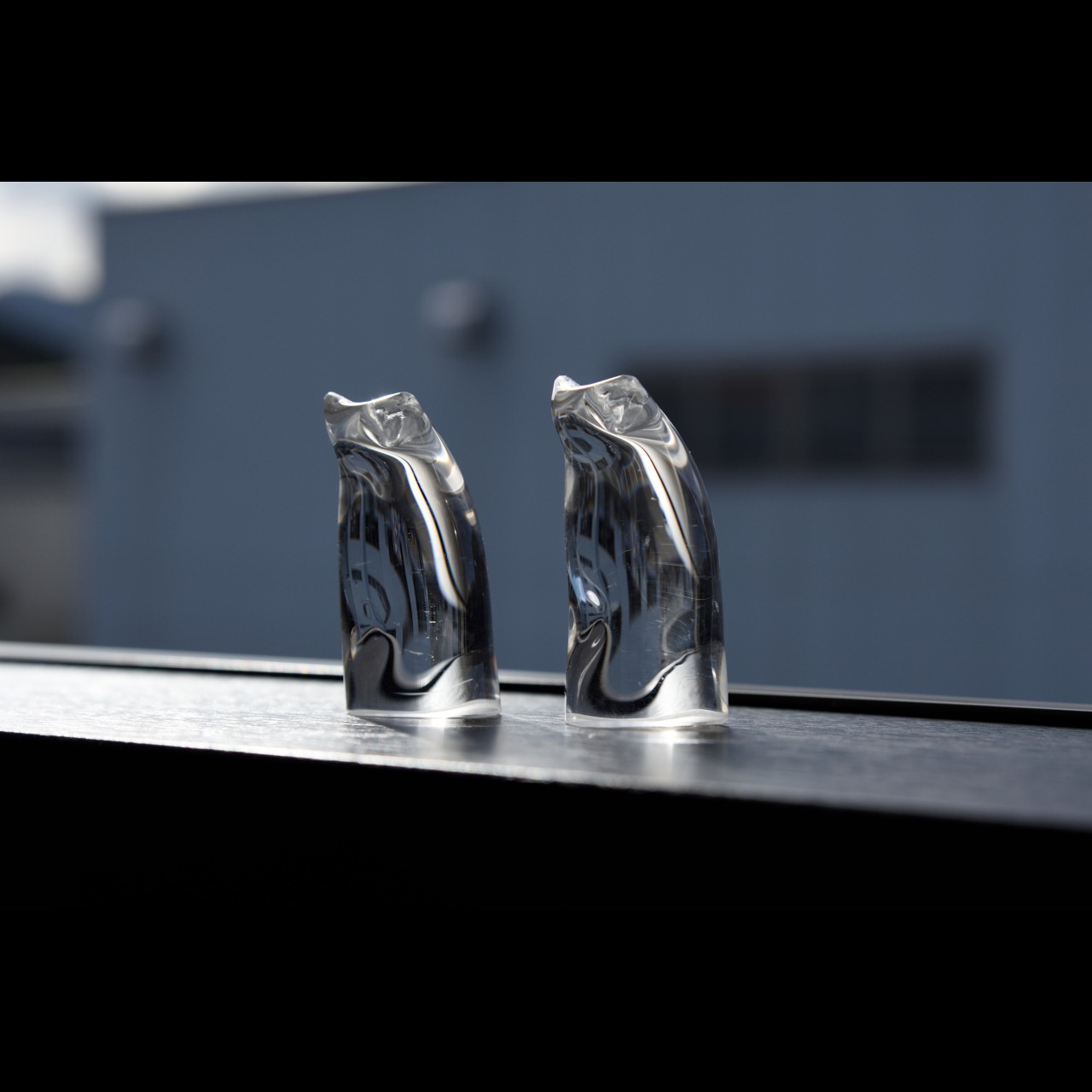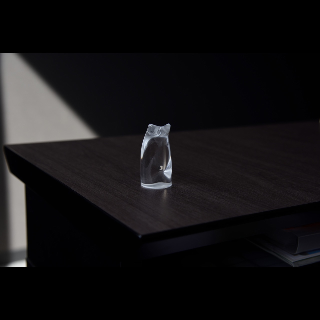 光学用のガラス棒の端材を使用した、ネコのような形のペーパーウェイトです。