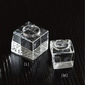未加工の光学ガラスの板材料を、熱で割ってキューブ状にしました。溶解されたガラスが固まる時に表面にできる波のような模様をそのまま残し、切断では得られない自然な雰囲気が魅力となっています。