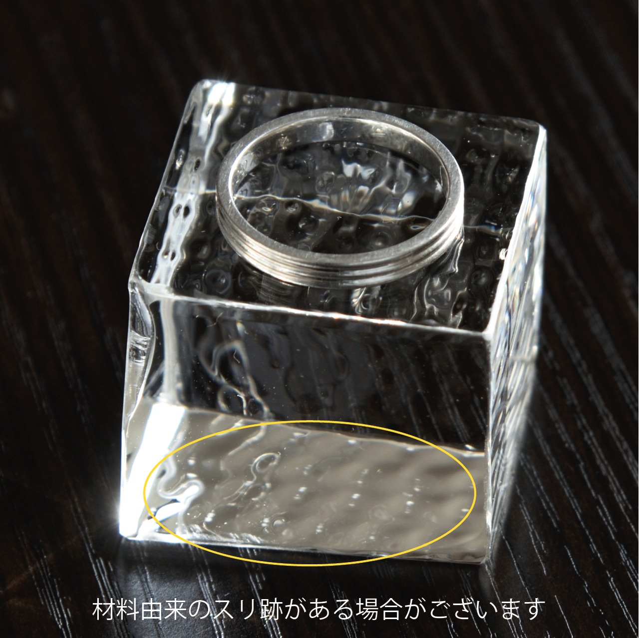 ●光学ガラスの素材感を生かした製品のため、材料由来のスリ跡がある場合がございます。また黒い傷は破断時に生じるもので製法上避けられないため、恐れ入りますがご了承ください。